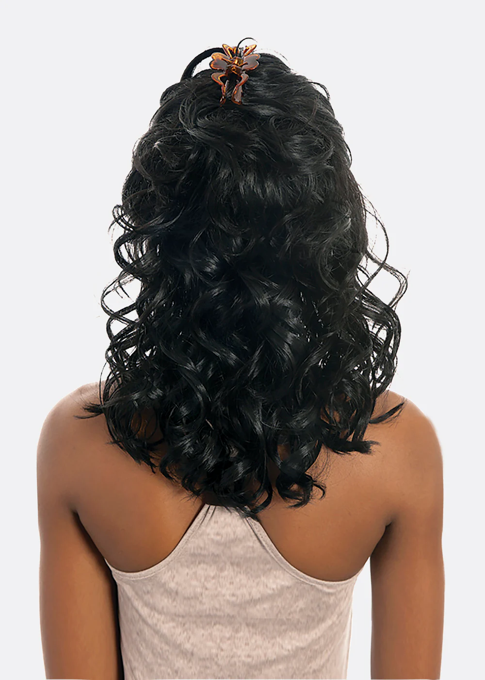 - 17 Inch Layered Body Curl Style with Pull-Back on Side with Front loose Piece
