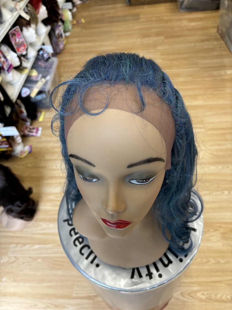 Blue Lace Front Synthetic Wig, a captivating choice for those looking to make a bold statement with their hairstyle. This exquisite wig features a striking blue hue that exudes confidence and individuality, perfect for adding a pop of color to any look.