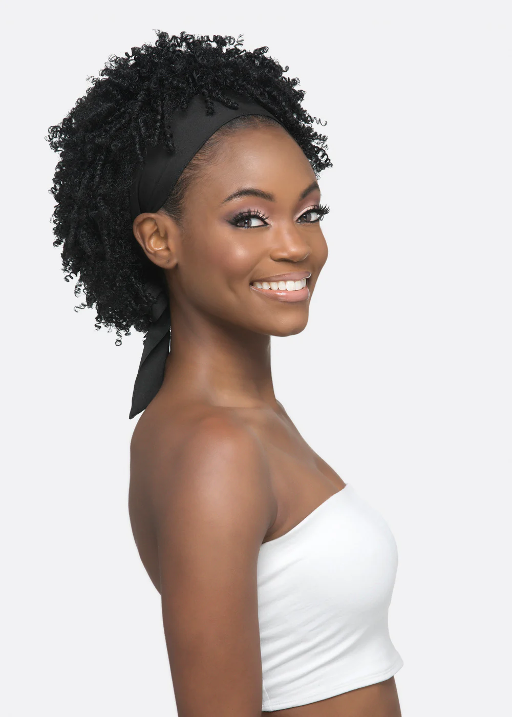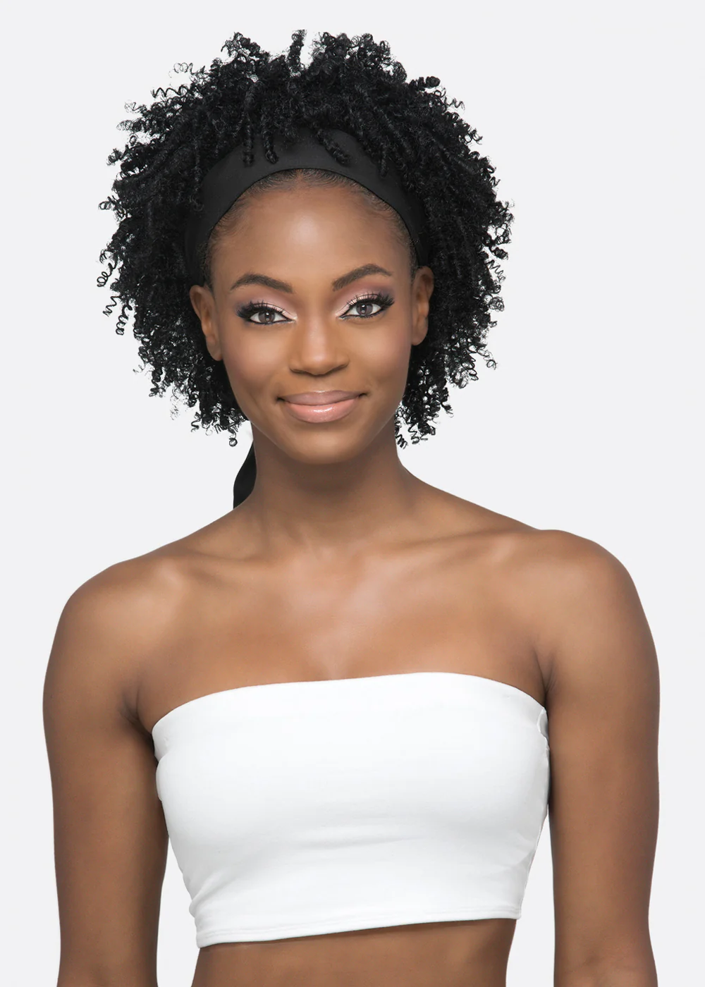 SHORT TIGHT COIL CURL WITH BLACK TIE BACK HEADBAND
