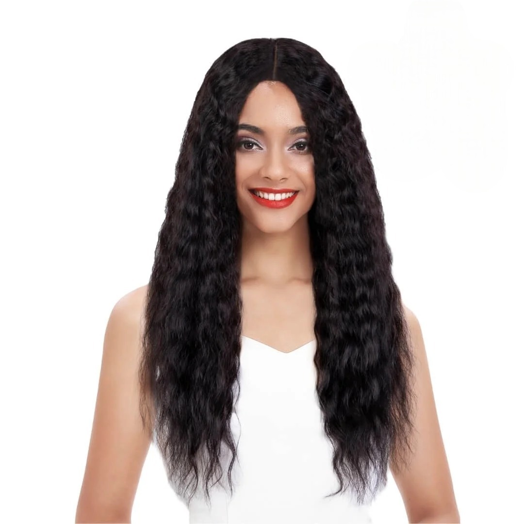 Natural, wavy curl pattern in this beautiful Brazilian, Virgin hair long wig. With a lace front and lace centre parting, this wig can be styled so realistically.