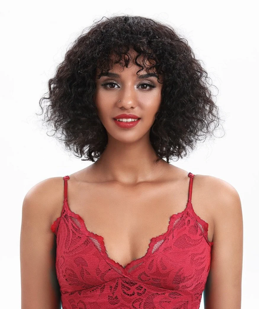 The pretty Orla Wig is almost wet look curly style in this loose S curl bob. This lightweight wig also features a curly fringe.
