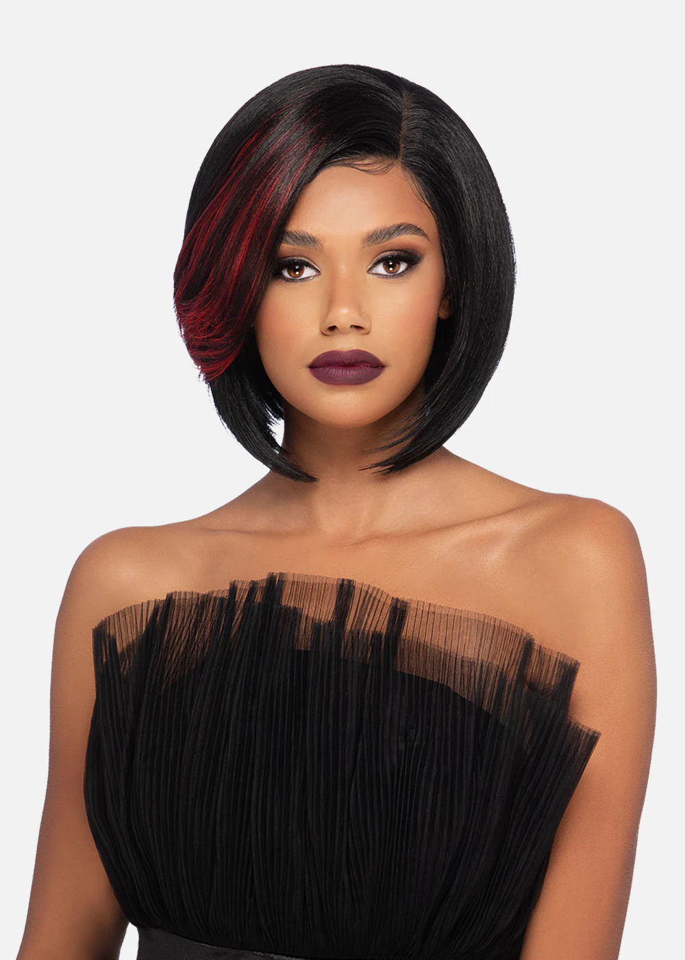 10″ LAYERED ANGLED BOB WITH FEATHERED SIDE BANG WITH INVISIBLE SIDE PART