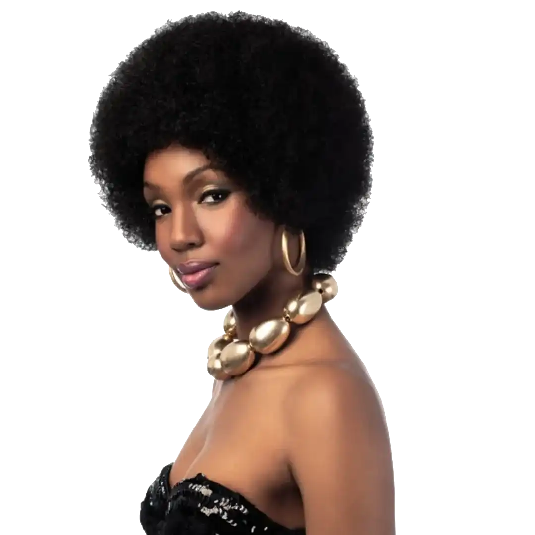 Big afro wig of soft, fine curls that resemble real afro texture hair.