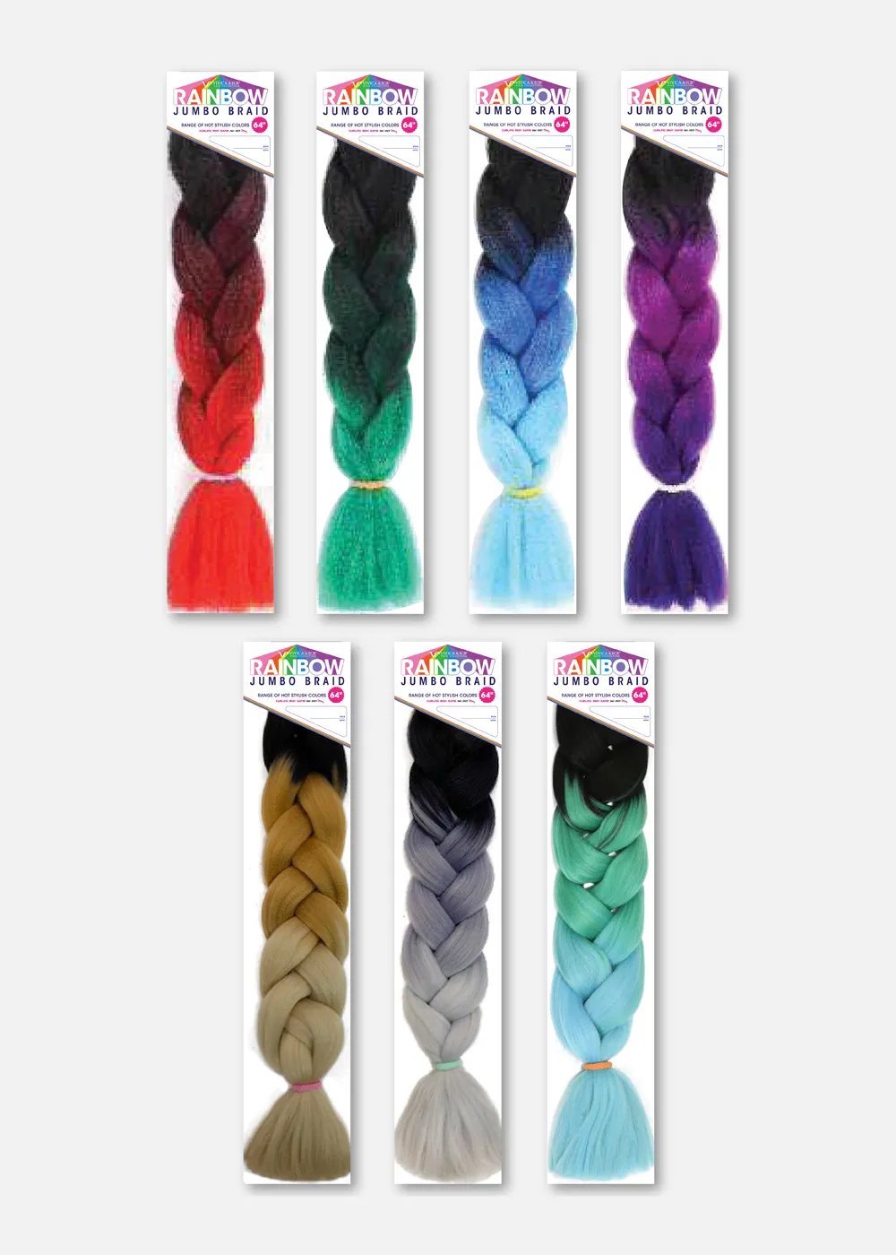 64″(FOLDED 32″) 3TONE COLORED RAINBOW JUMBO BRAID
