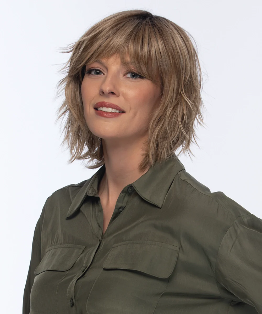 Monofilament Top | Cool, confident and effortlessly undone. Hollis is layered with intention and built for movement. She’s the style that makes a statement without trying too hard. Heat defiant fiber means no limits on how far you take her. Our Heat Defiant wigs can withstand heated styling tools up to 320°F (160°C).